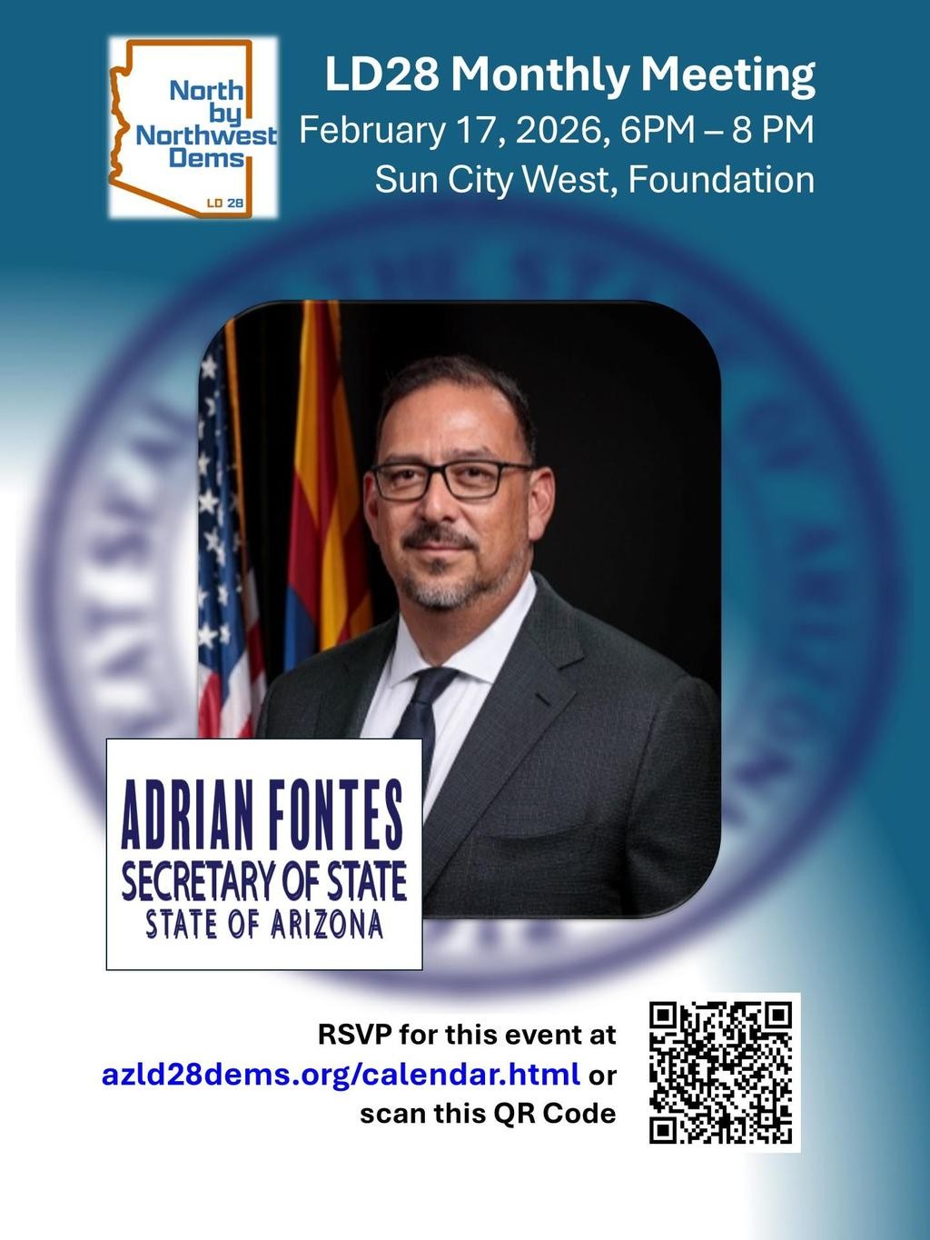 It's always a very special experience when Arizona Secretary of State, Adrian Fontes, takes the stage at one of our events. As an attorney and a former marine, he is in the RIGHT place at the RIGHT time to protect the voters of Arizona. He has fought the Administration's attempt to co-opt our private records. He monitors the actions of County Recorders who may not have our best interests in mind. His decisions and actions are grounded in the Constitution and the law. Each time he delivers a speech it is new and crafted for the audience in front of him.